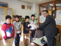 2016年12月21日 13時41分 本日、福島民友新聞須賀川支局の方が来校してくださり、児童会松なみ委員会が呼びかけた白江小での歳末募金を民友愛の事業団に寄付することができました。これは、11月末に各学年をまわって歳末募金を呼びかけたところ、児童、保護者の皆さんの協力があって集まったものです。松なみ委員会の6年生4名の皆さんが引き渡しに立ち会いました。少しでも役にたって、多くの皆さんがよい年を迎えることができることを祈っています。ご協力いただき、ありがとうございました。