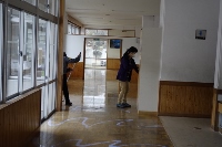 ワックス塗り完了、廊下も教室もピカピカ