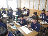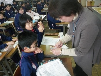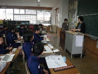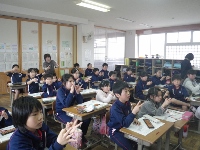 2017年2月23日 11時46分 今日は朝から雨模様、ちょっと春らしくほっとしますね。さて、3年生で本日の2.3校時、そろばん教室がありました。講師は、このところ毎年お世話になっている矢吹先生と梁取先生、2時間かけてそろばんの仕組みから初歩、やさしい計算の仕方を教えていただきました。子どもたちも真剣な表情で授業を受けていました。よい姿勢でそろばんを指ではじいていると、気持ちも頭もすっきりしてきますね。脳が活性化されるのでしょうか。最後に、そろばん玉のプレゼントまでいただきました。お二人の先生、大変お世話になりました。