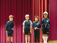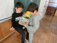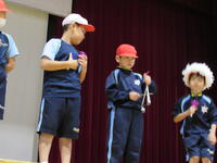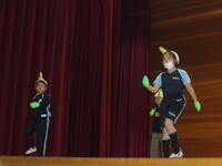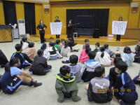 「ひゃくにんのおとうさん」の絵本や昔がたり、「ねずみのよめいり」のブラックシアターを楽しみました。1学期より、お話の聞き方も上手になってきました 2年生、3年生と一緒に楽しい時間を過ごしました。