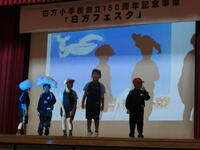 10月14日、土曜日。秋晴れの中、白方フェスタ・150周年記念事業を行いました。1年生の発表は、「音読劇くじらぐも」。11人で、ナレーター役になったり、子ども役になったりと大活躍。ひらがなも文章も読めなかった子どもたちが、物語文を暗記して発表する姿を見て、大きな成長を感じました。