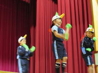 この写真は、前日のリハーサルの様子です。セリフを忘れたり、タイミングが合わなかったり、ドキドキしながら見守りました。