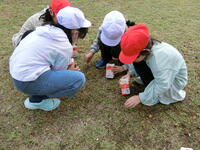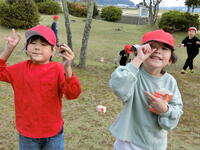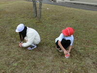 「わ~、たくさん拾ったよ!」と大収穫に大喜びの1年生。