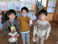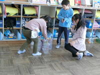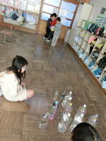 簡単に倒れないように、水を入れて工夫し始めました。みんなで仲良く遊んで楽しい時間を過ごしました。