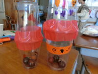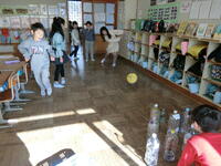 ペットボトルで、ボーリング遊びを考えました。ペットボトルにも点数が書いてあります。1本倒しただけでも