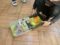 水の実験を通して、水の不思議を学びました。たくさん水を入れたビニールに竹串や鉛筆をさしても、水がもれないことを知り、驚いていました。