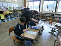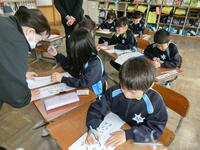 ペンで書くことに慣れていない1年生ですが、文字の止め、はらいなどに気を付けて、どの子も丁寧に書いていて