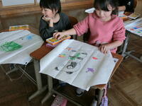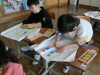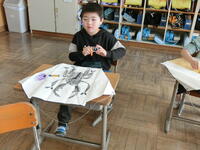 動物や昆虫、魚、自分の顔など描きたいものを自由に描く子どもたち。とても楽しそうでした。