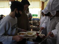 18日に学校の畑にジャガイモの種芋をまきました。地域の方に鍬の使い方も教わりました。見ていると簡単にできそうなのに、実際に鍬を持つと思い通りにはいかず、悪戦苦闘していました。大きなジャガイモが実りますようにと、みんなで「ビック!ビック」と掛け声をかけながらじゃがいもをまきました。