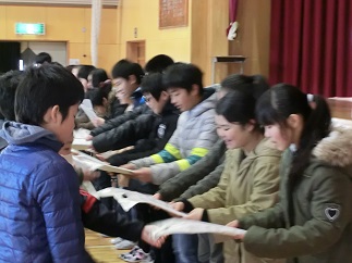 全校生が縦割り班に分かれ、障害物リレーや長なわ、クイズなどを楽しみました。体育館には、今年1年間の6年生の活躍を撮影した写真や、1~5年生から6年生全員に宛てたメッセージなどが掲示されました。